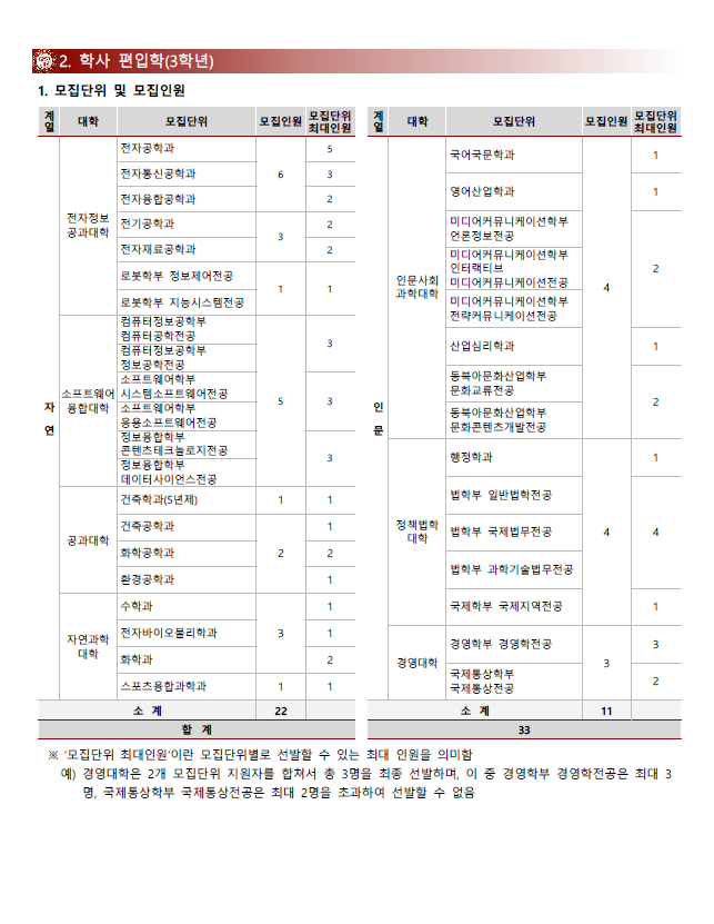 [2022학년도] 전남대학교 편입학 모집요강