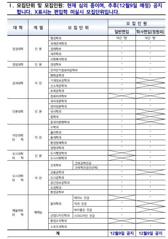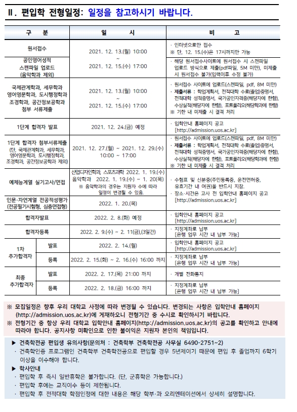 [2022학년도] 서울시립대학교 편입학 모집요강 주요사항