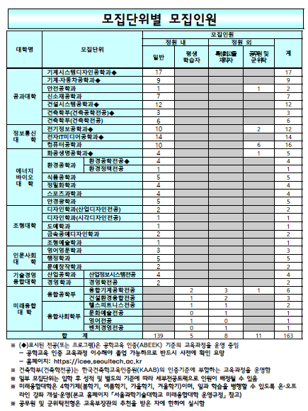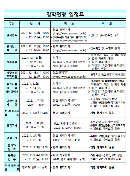 2022학년도 서울과학기술대학교 편입학 모집요강입니다.