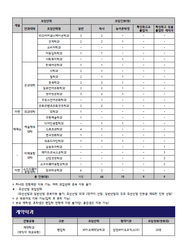 [2022학년도] 아주대학교 편입학 모집요강 사전공지