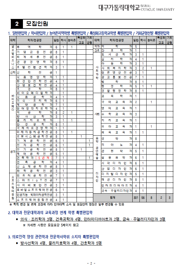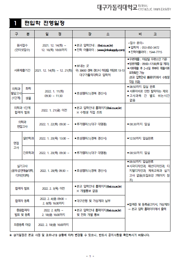 2022학년도 대구가톨릭대학교 편입학