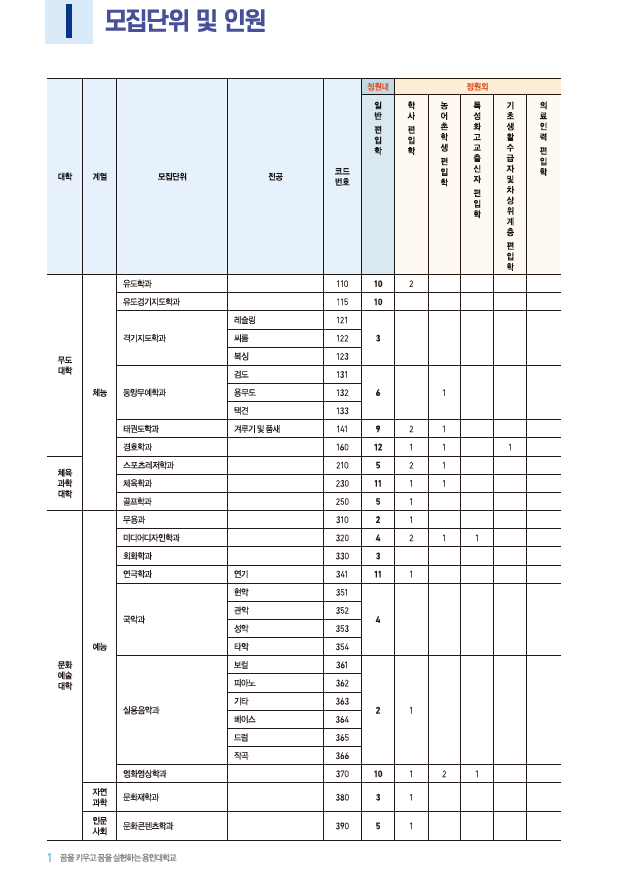 [2022학년도] 용인대학교 편입학 모집요강입니다.