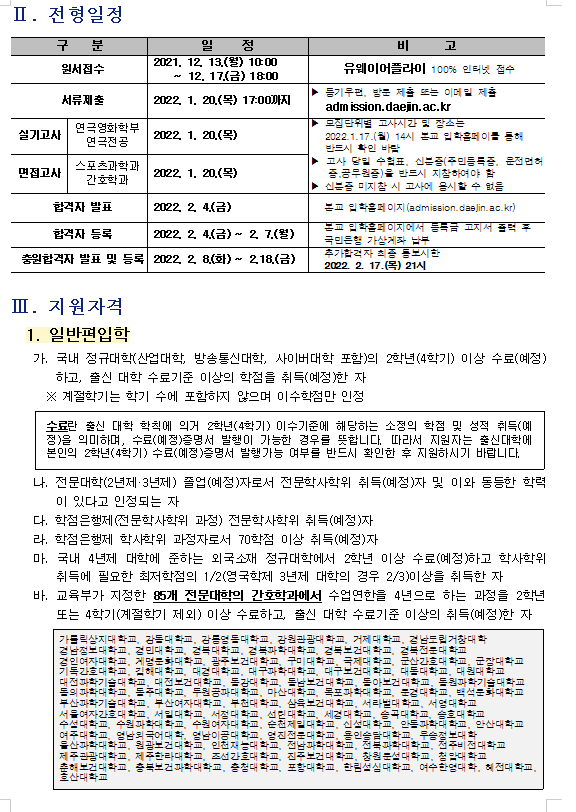 [2022학년도] 용인대학교 편입학 모집요강입니다.