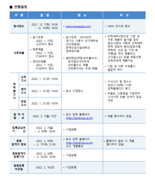 2022학년도 한국산업기술대학교 편입학 모집요강입니다.