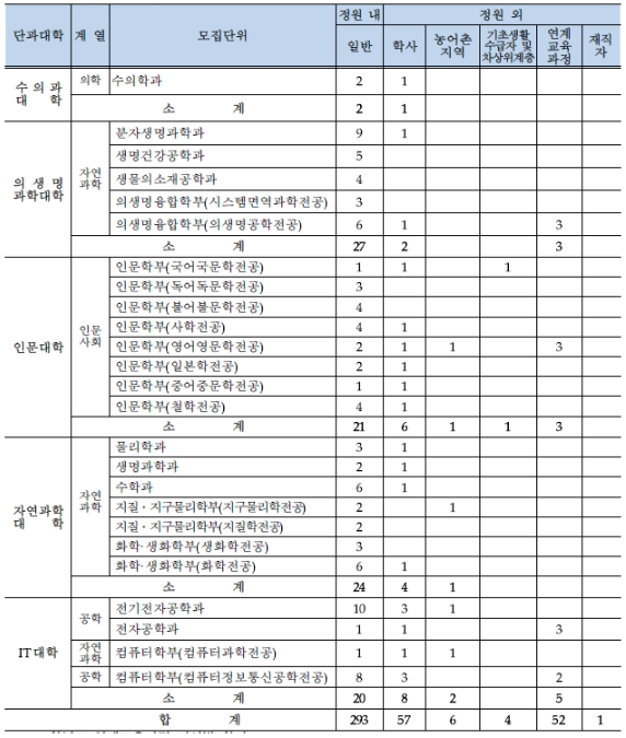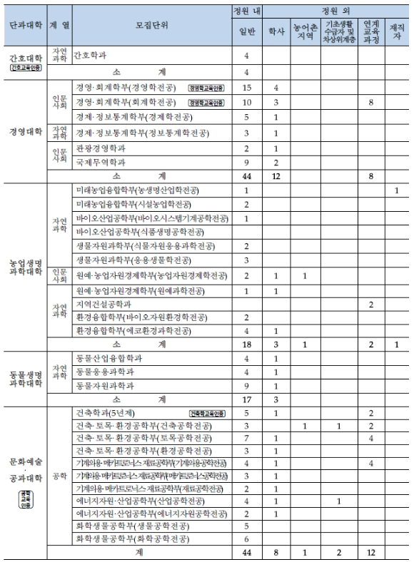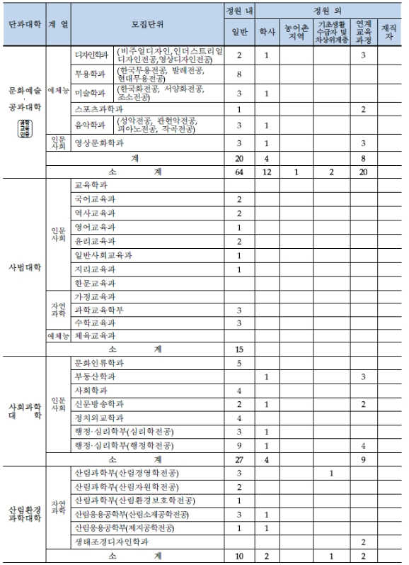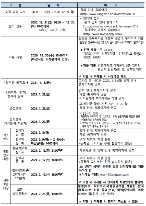 [2021학년도] 강원대학교 편입학 최종 모집요강