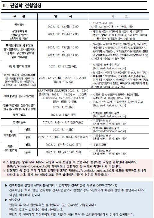 2022학년도 서울시립대학교 편입학 모집요강입니다.
