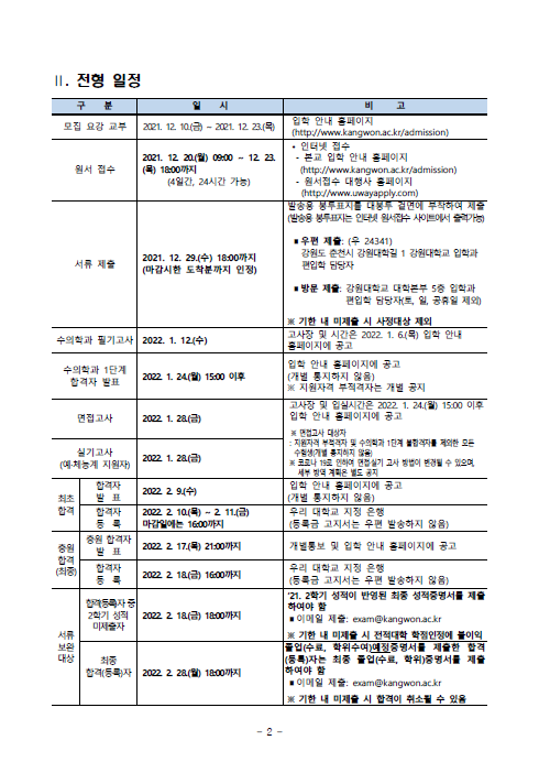 2022학년도 강원대학교 편입학 모집요강 안내드립니다.