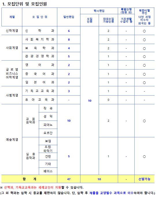 2022학년도 서울신학대학교 편입학 모집요강 안내드립니다.