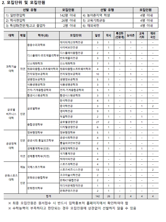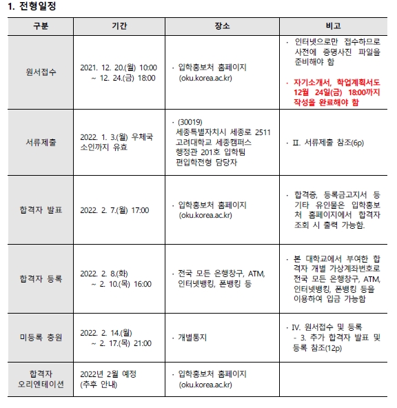 2022학년도 고려대학교(세종) 편입학 모집요강 안내드립니다.