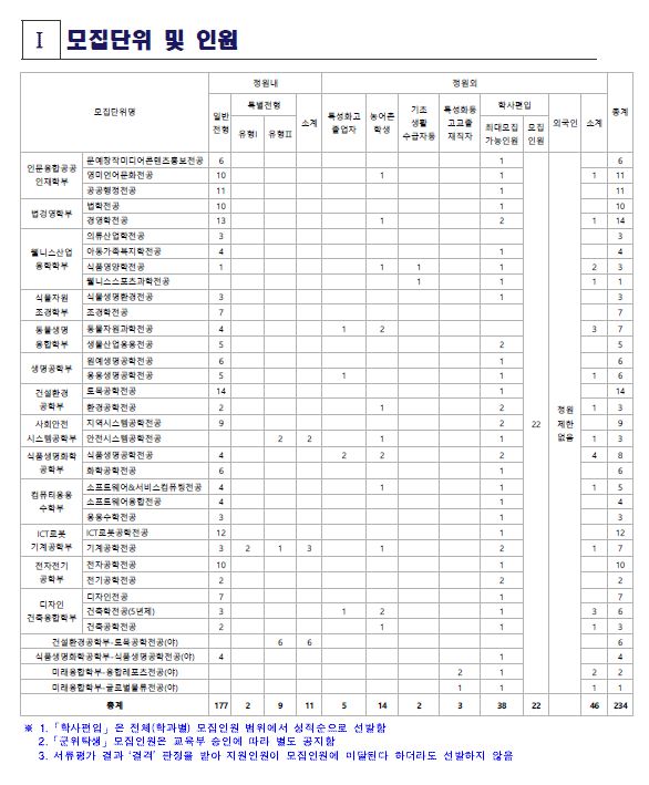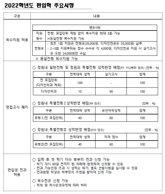 [2022학년도] 전북대학교 편입학 최종 모집요강
