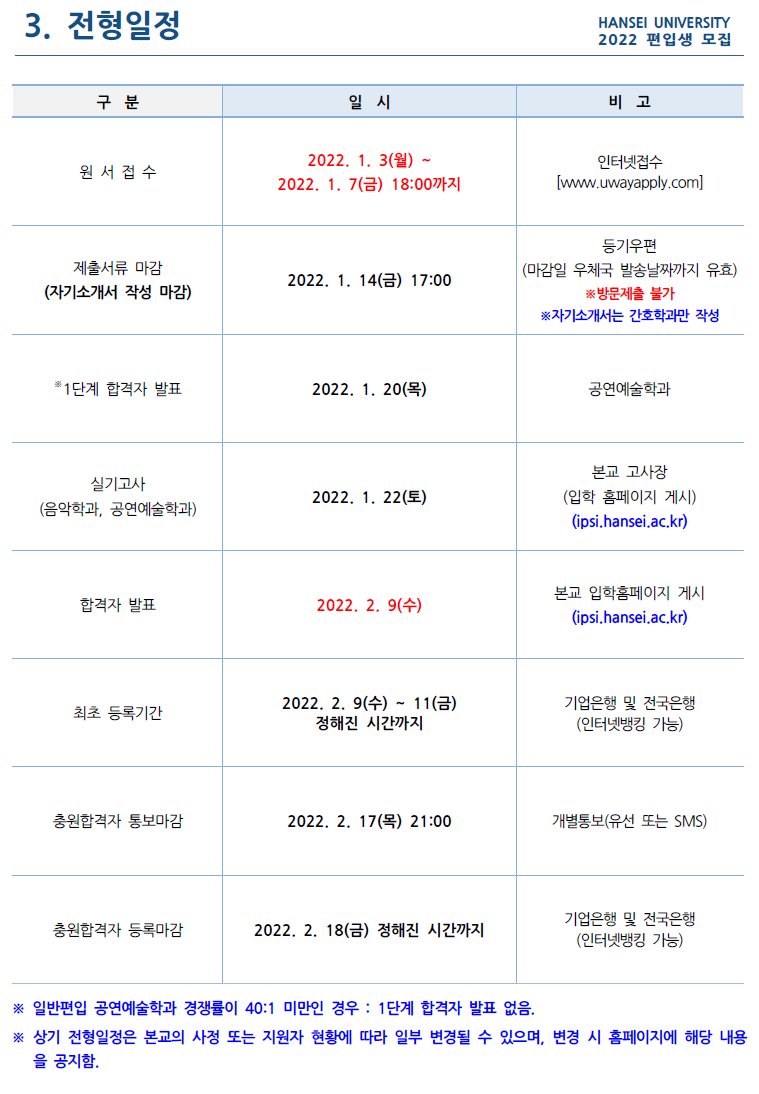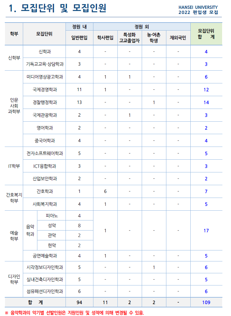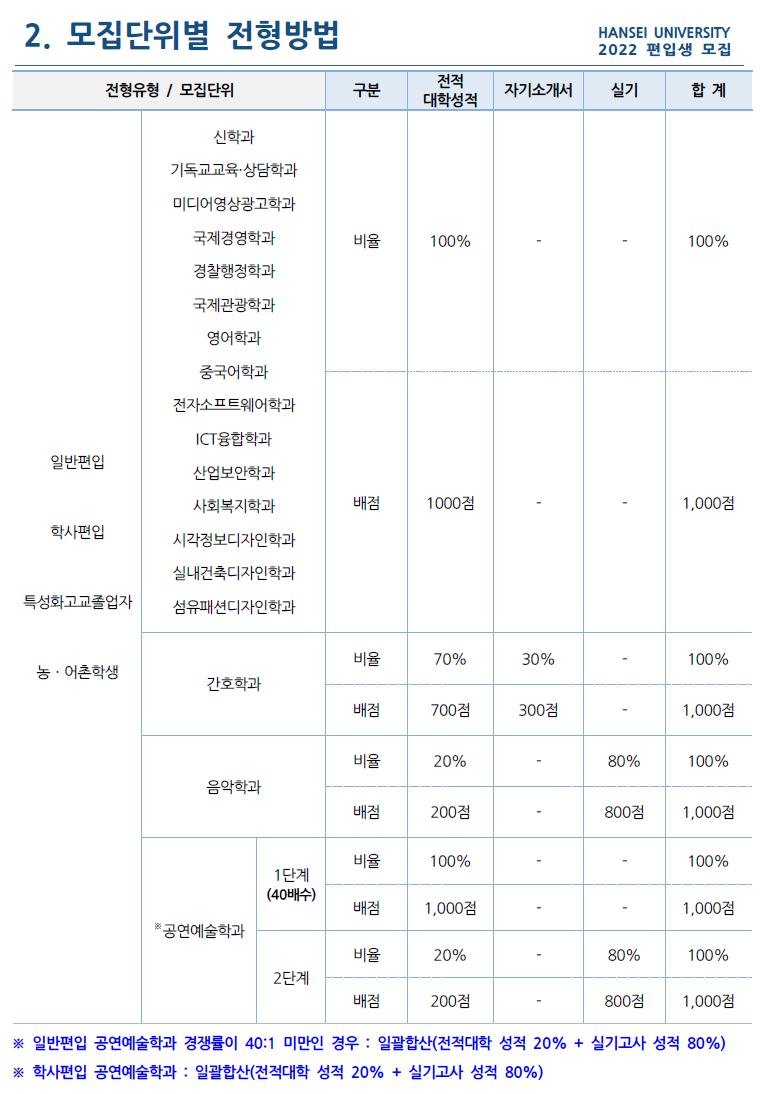 [2022학년도] 한성대학교 편입학 최종 모집요강