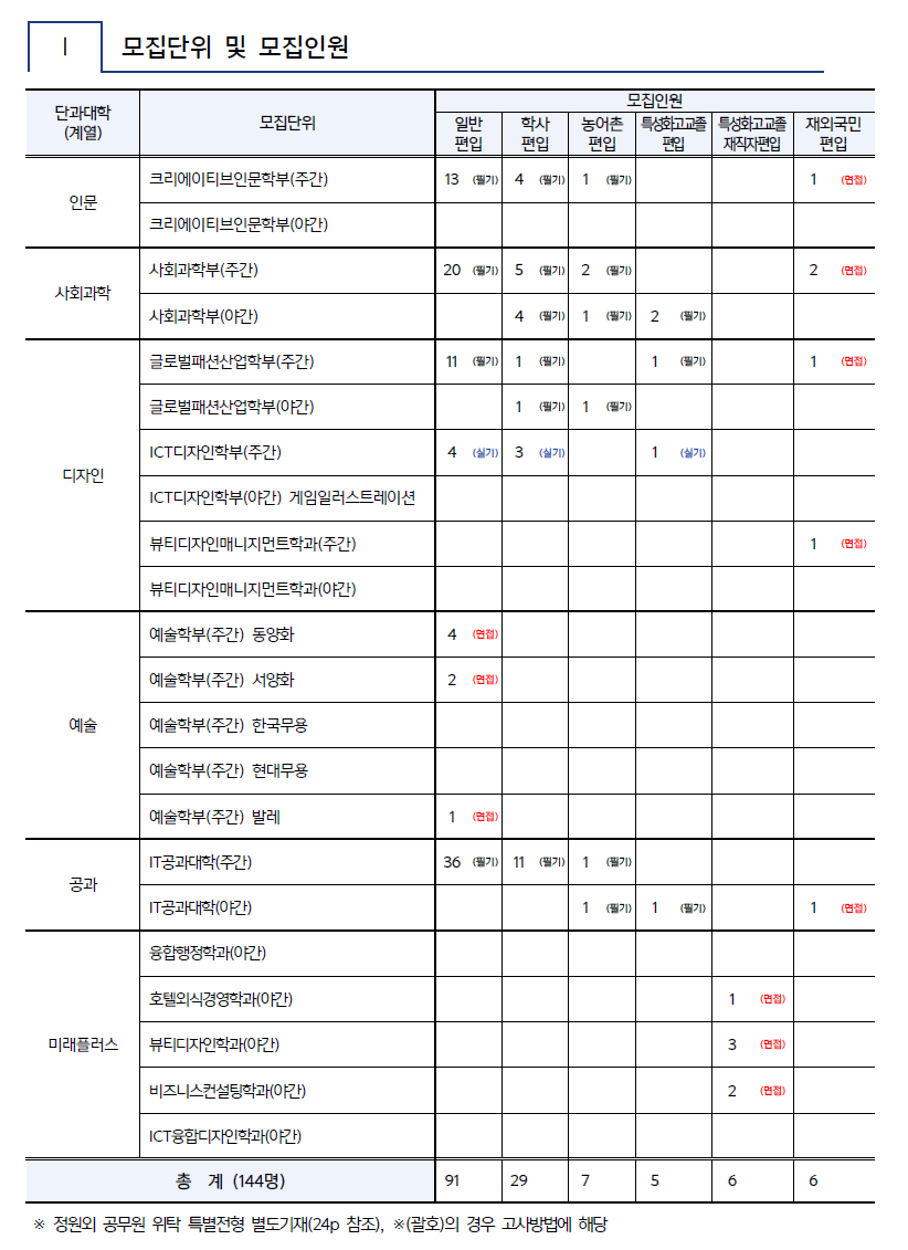 [2022학년도] 서경대학교 편입학 모집계획안
