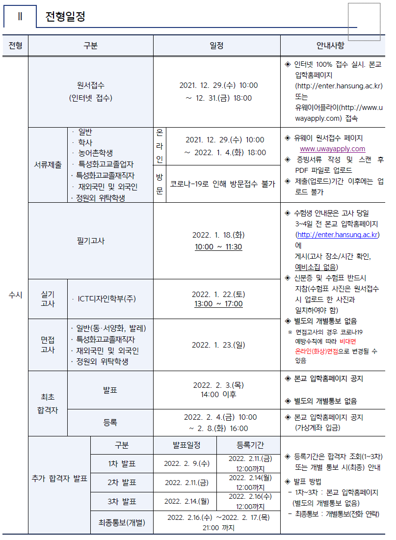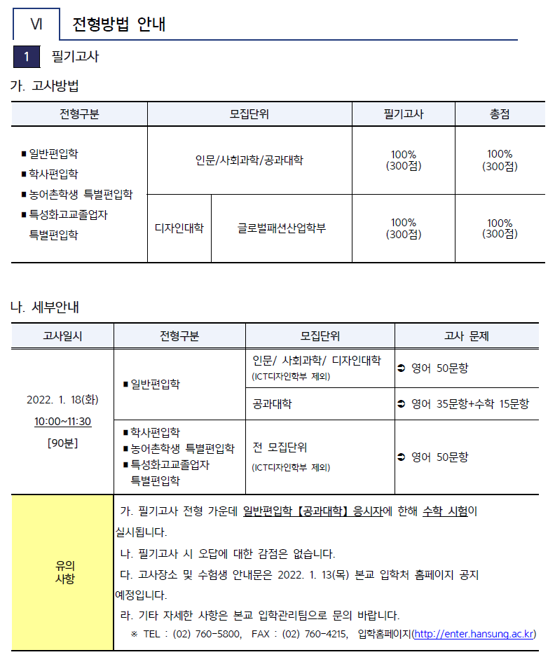 [2022학년도] 한성대학교 편입학 최종 모집요강