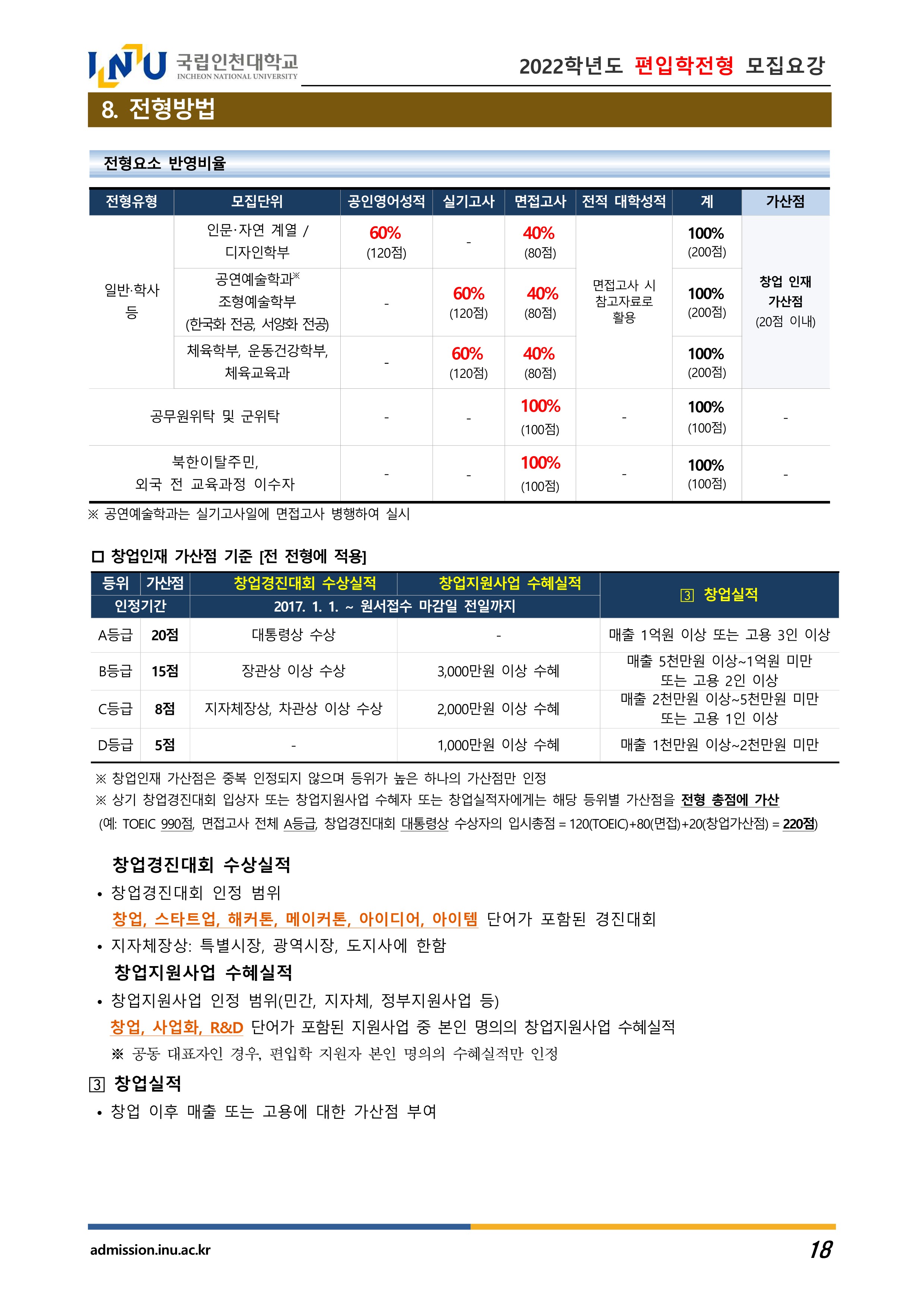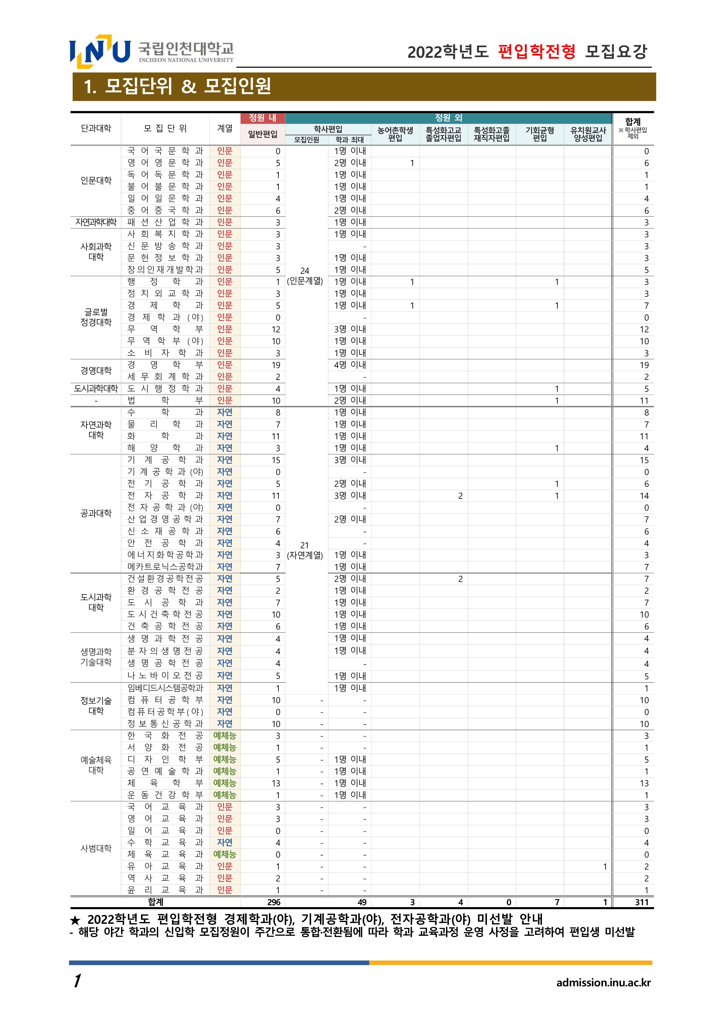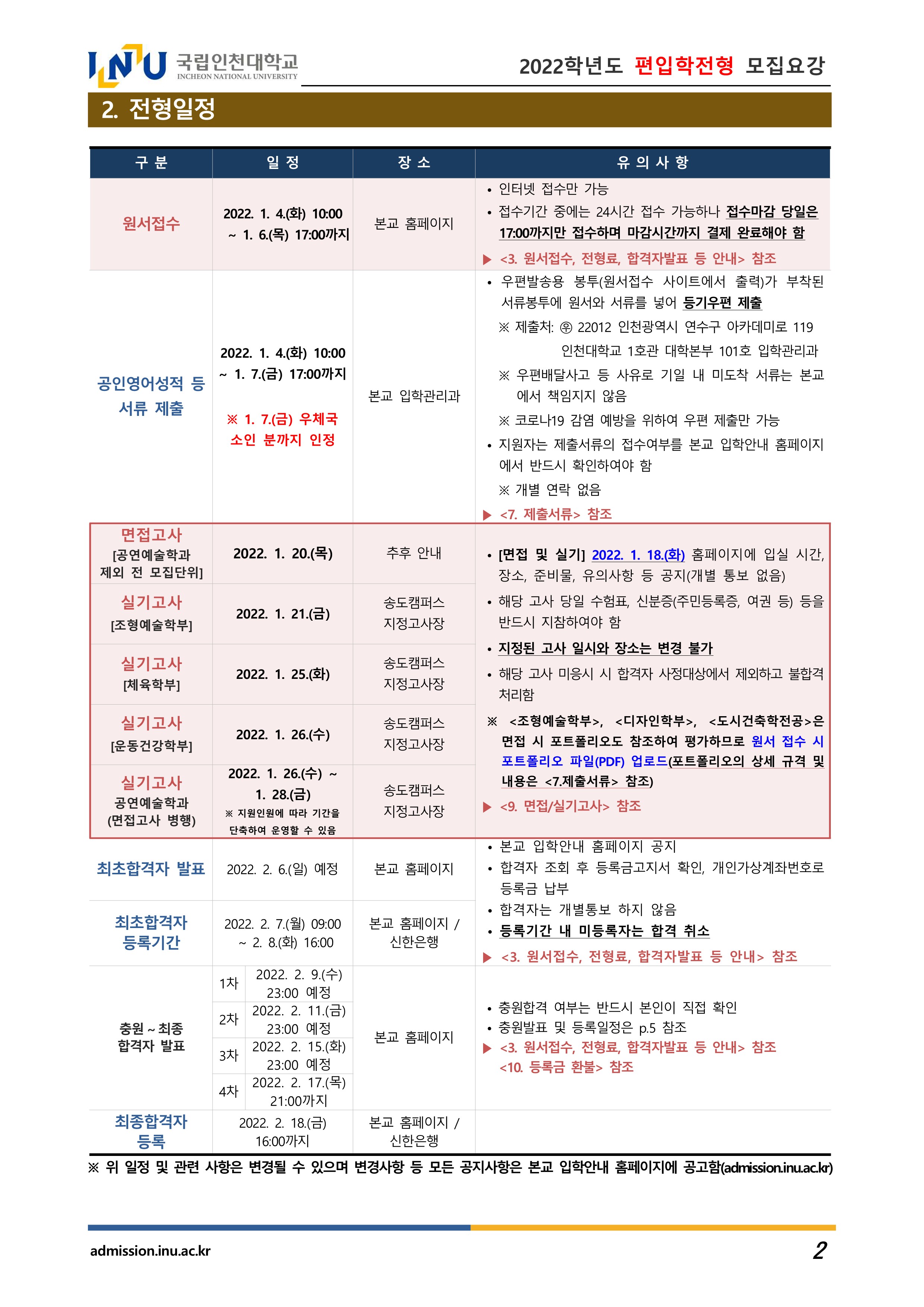 [2022학년도] 인천대학교 편입학 최종 모집요강