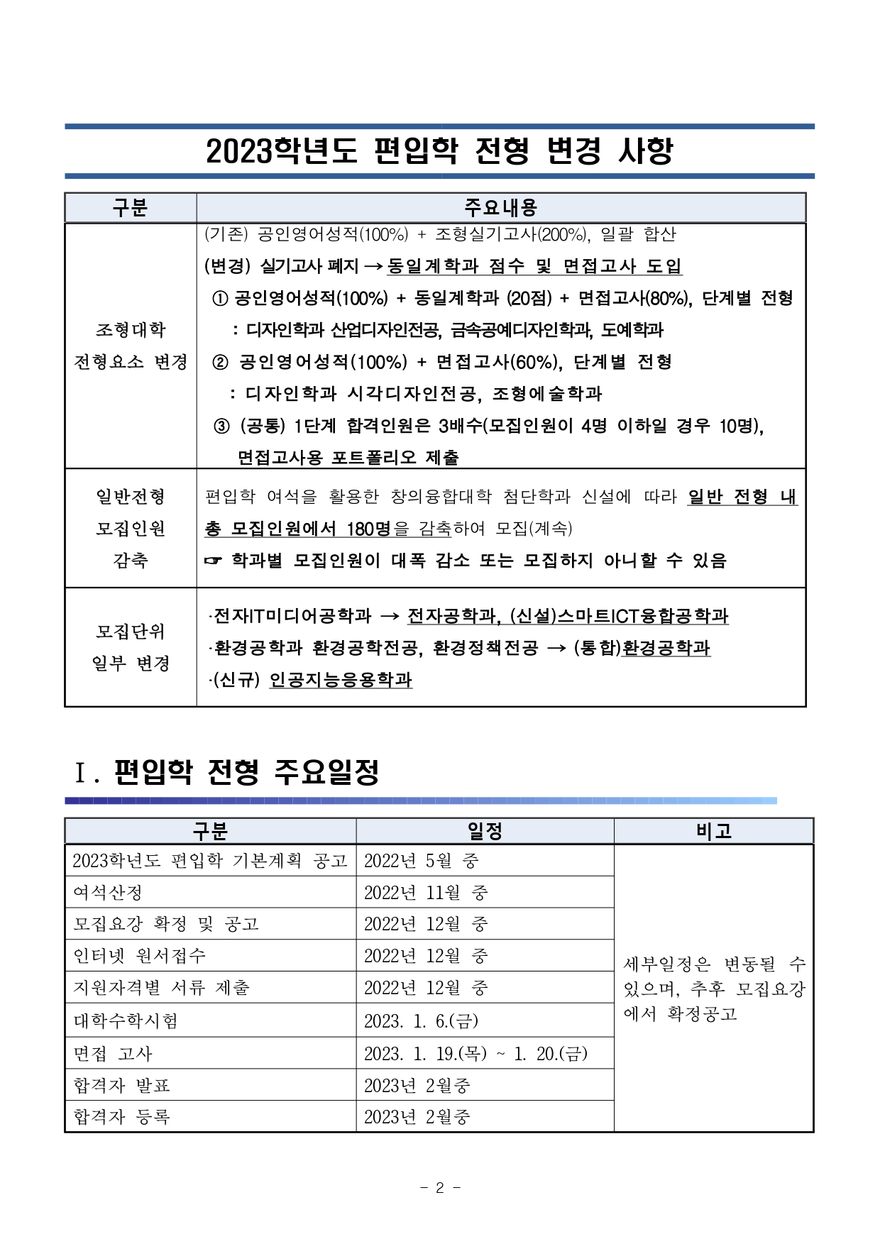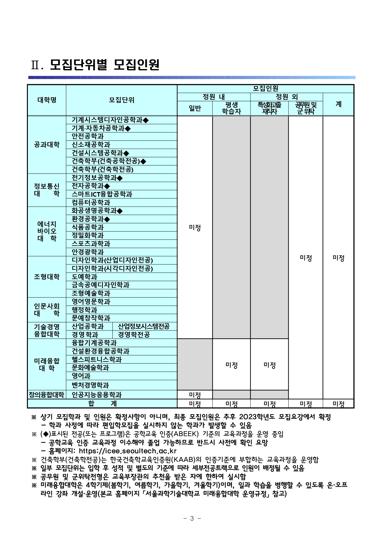 2023학년도 서울과학기술대학교 편입학 전형 기본계획 안내드립니다.