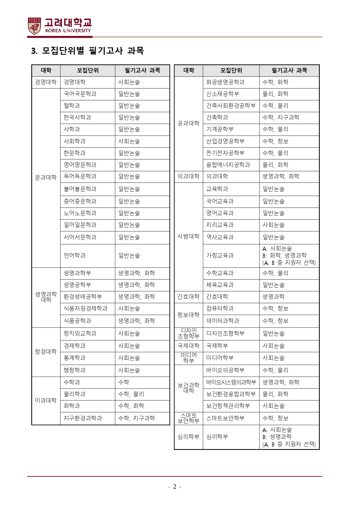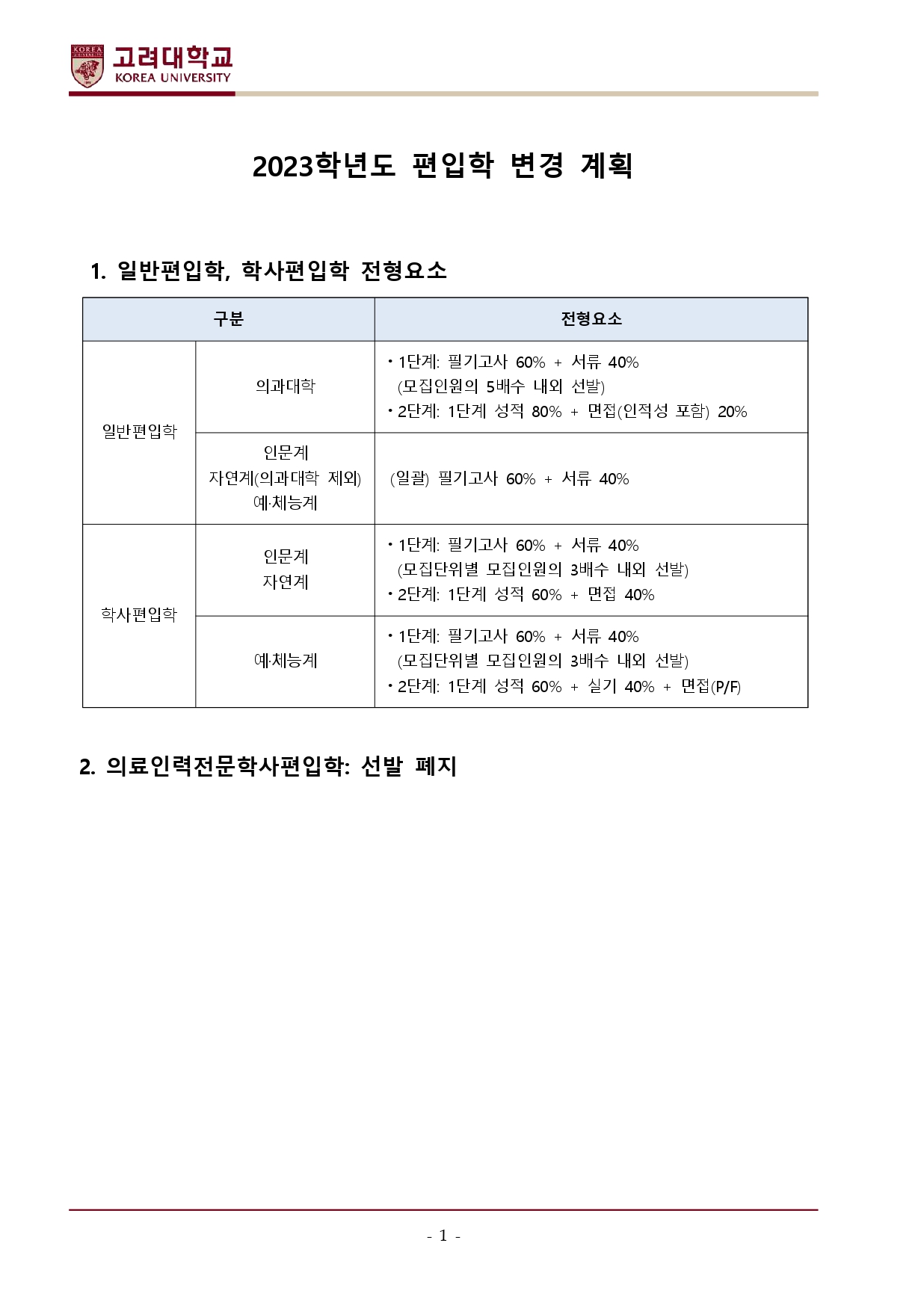 [2023학년도] 고려대학교 편입학전형 주요 변경사항