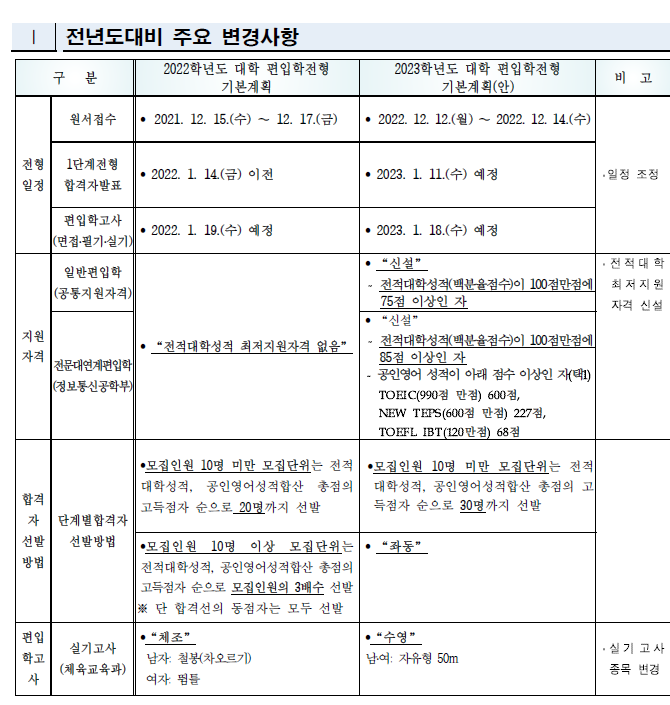 2023학년도 충북대학교 편입학 전형 기본계획 안내드립니다.