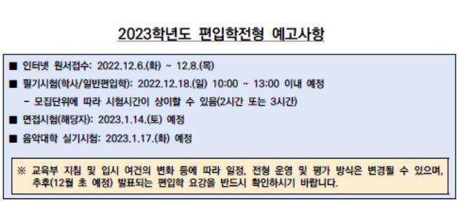 2023학년도 연세대학교 편입학전형 예고사항 안내드립니다.