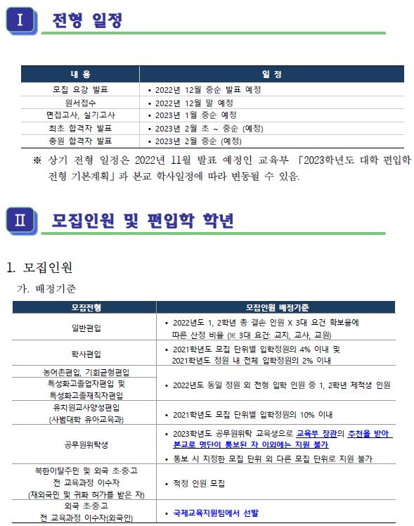 2023학년도 인천대학교 편입학 전형 기본계획 안내드립니다.