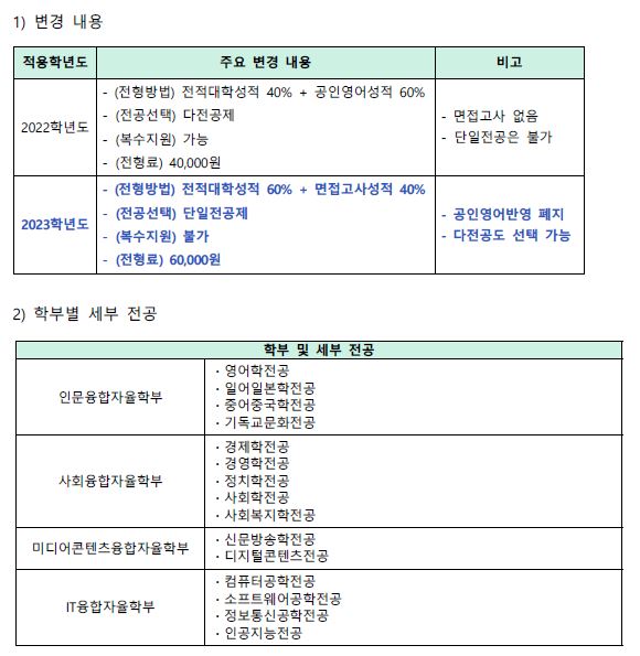 [2023학년도] 성공회대학교 편입학모집 주요변경 사항
