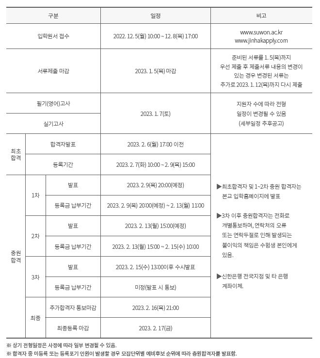 2023학년도 수원대학교 편입학 최종 모집요강입니다.