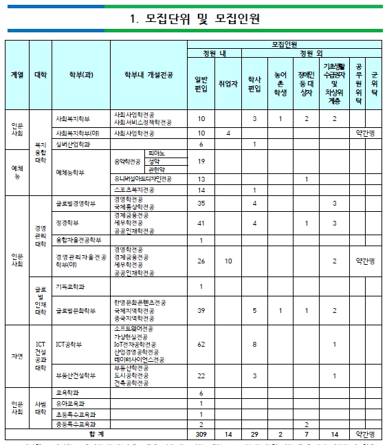 [2023학년도] 광운대학교 편입학 최종 모집요강