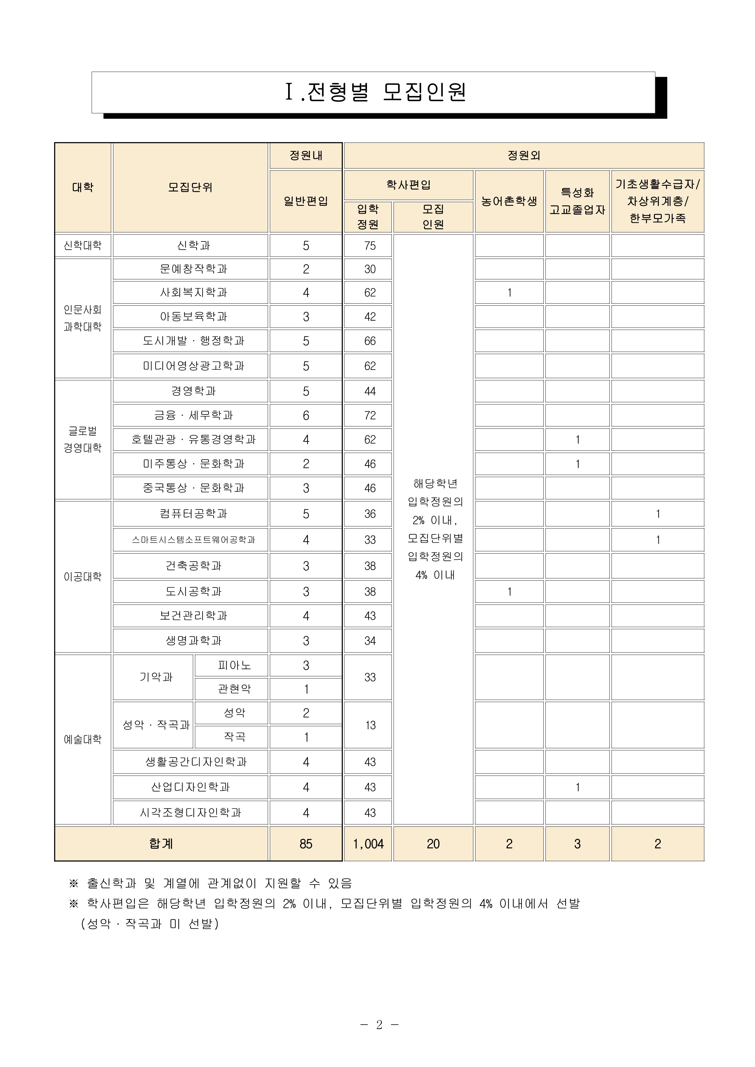 [2023학년도] 성결대학교 편입학 최종 모집요강