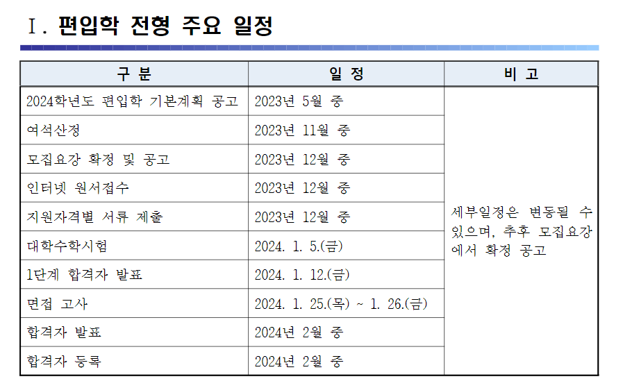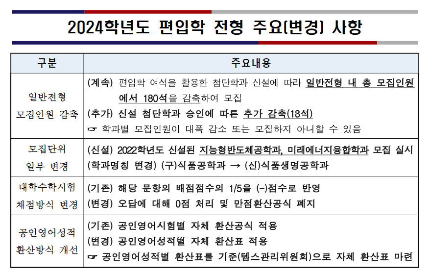 2024학년도 서울과학기술대학교 편입학 기본계획 안내드립니다.