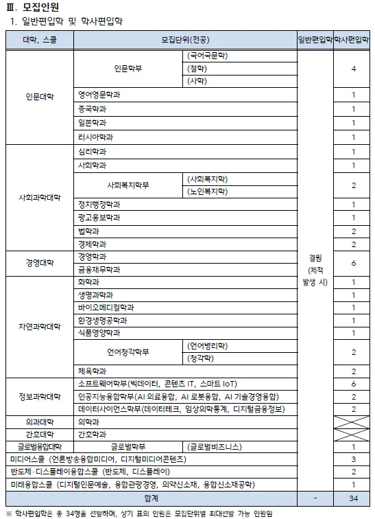[2024학년도] 한림대학교 편입학 모집 기본계획