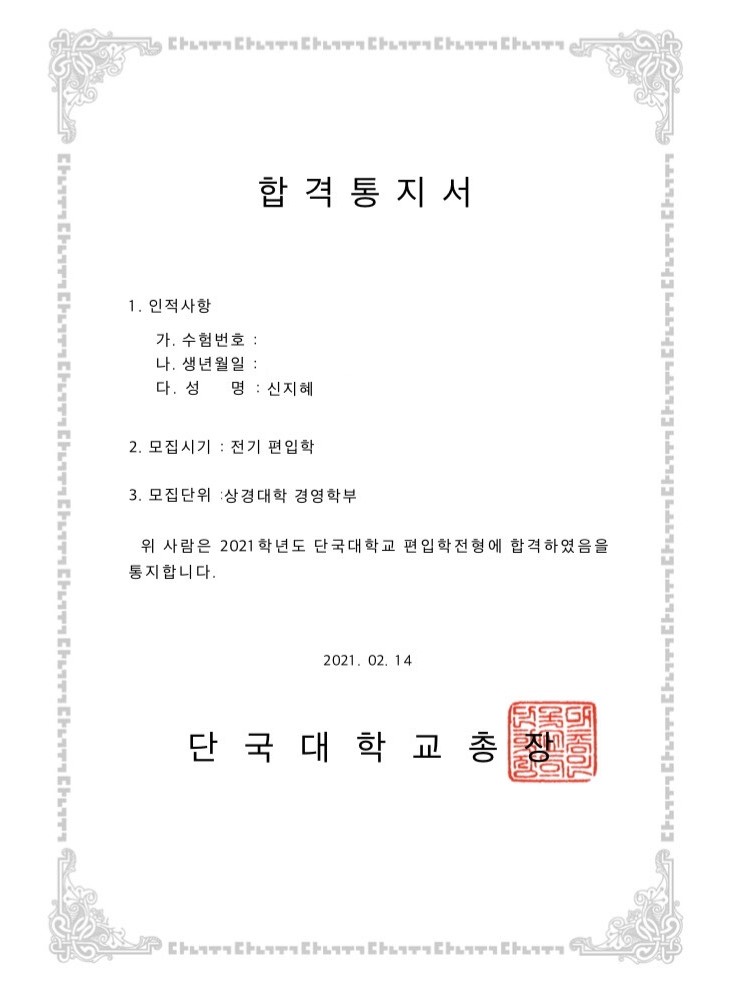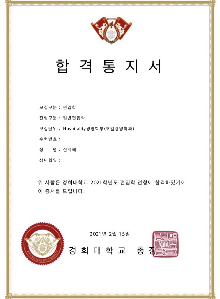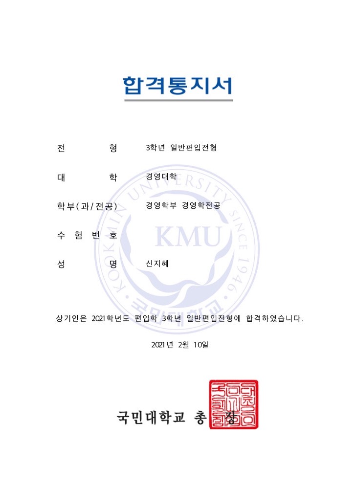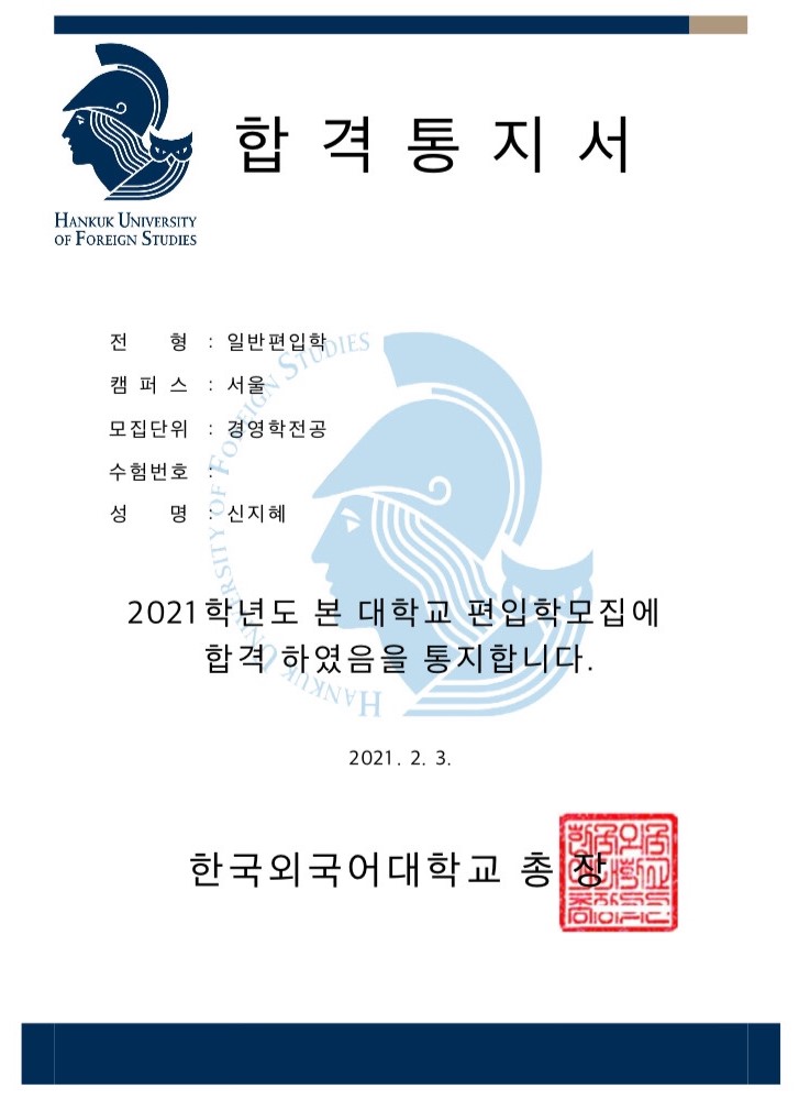 고등학생 때 대학 공부는 재미 없어보였고 서비스업에 종사하고 싶어 전문대학교에 진학했으나 뒤늦게 공부에 흥미가 생겼습니다. 공부한만큼 학점이 잘 나왔고 경영에 대해 배우는 것이 재미있어져서 늦기 전에 더 좋은 학교에 진학하여 더 많은 것을 배우고싶다는 욕심이 생겼습니다. 평소 영어에는 자신이 있었기 때문에 편입을 선택했습니다. |