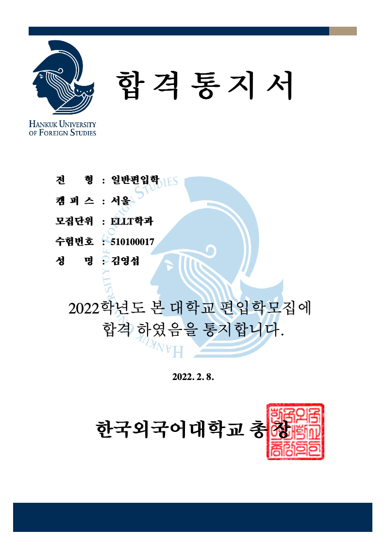 합격을 기다리는 마음이 정말 힘듭니다. 편입 생활도 쉬운 것만은 아닌 것 같습니다. 하지만 편입시험이 공부한만큼 성과를 내주지 못하는 정직하지 못한시험은 아니라고 생각합니다. 도전해볼만 하다고 생각합니다. 화이팅! |