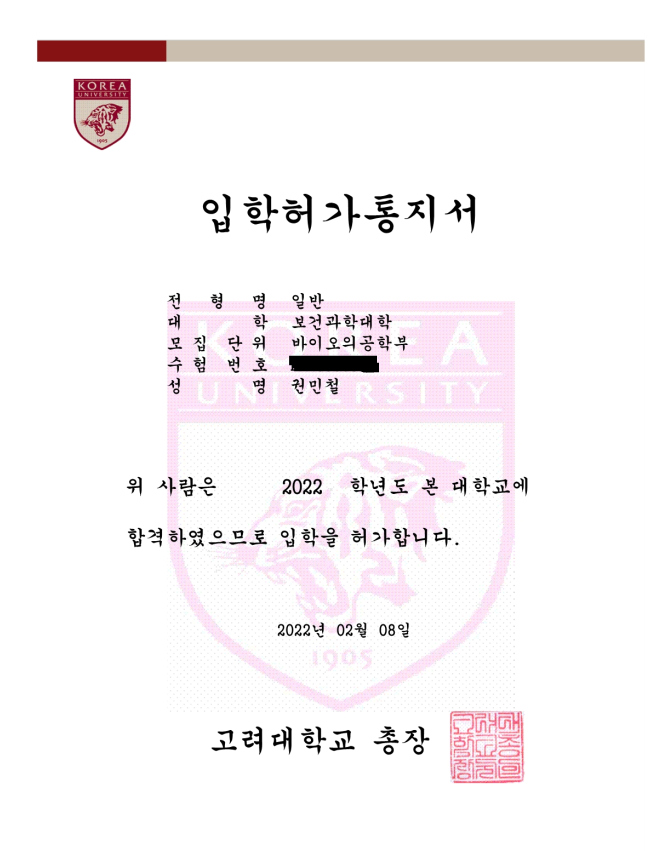 고려대학교 / 바이오의공학부 |