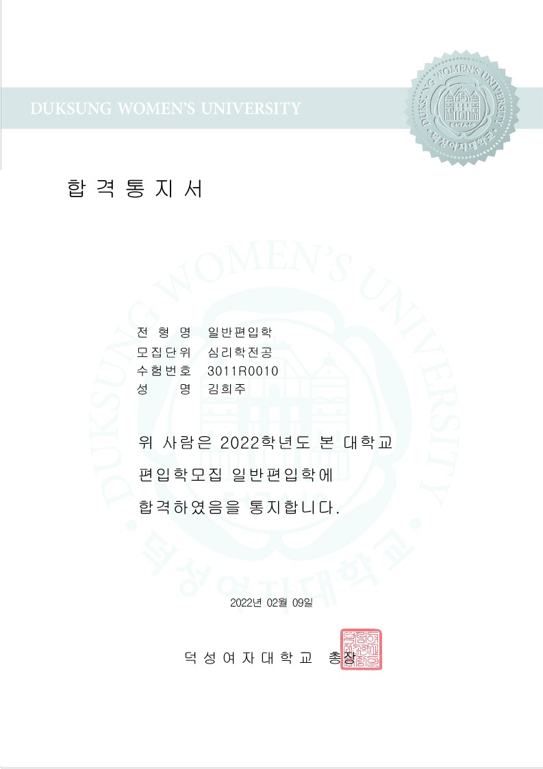 임상심리전문가라는 꿈이 생겨서 임상심리전공 대학원에 진학하기로 결정했습니다. 대학원 진학을 위해 심리학 학부졸업이 필요하다 생각이 들어 심리학과로 편입을 결정했습니다. |