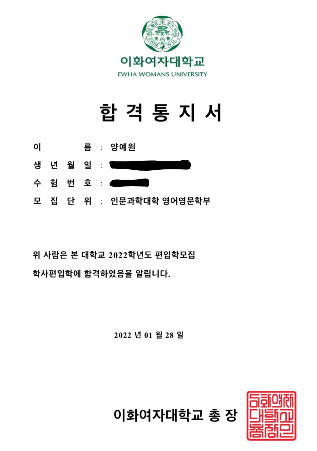 이화여자대학교 / 영어영문학부 / 82 |