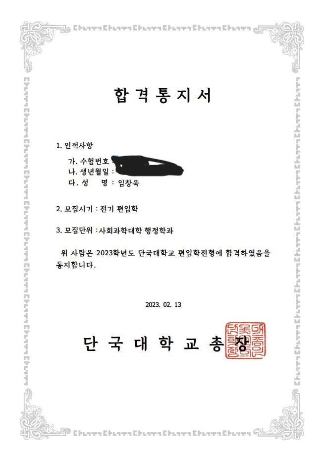 단국대학교 / 행정학과 / 가채점X |