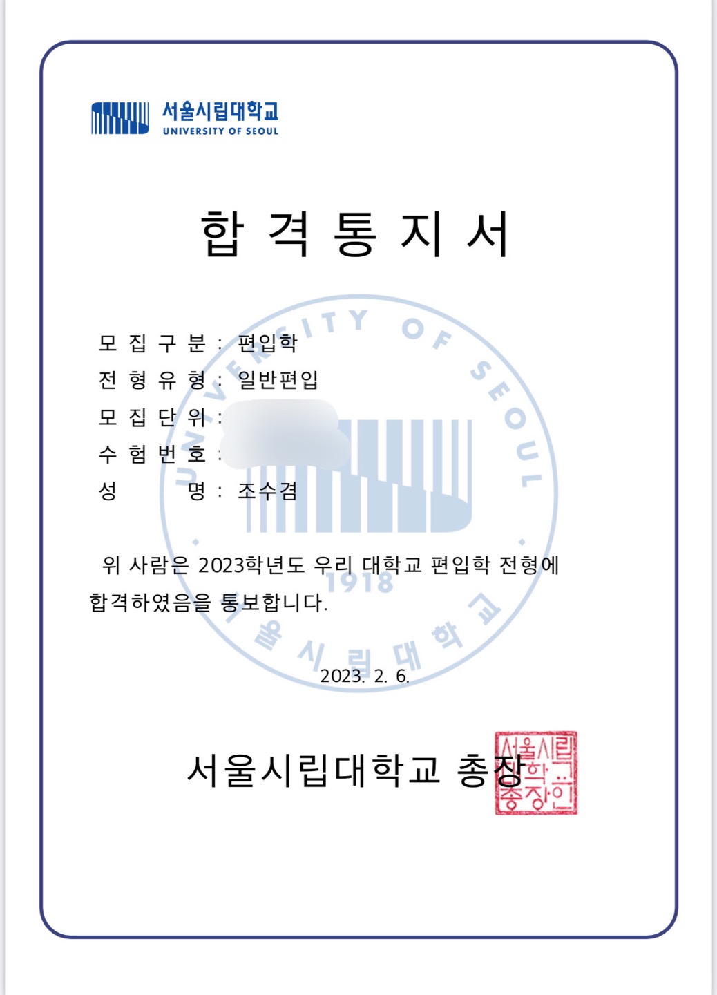 저는 학교 병행을 하며 편입을 준비했습니다. 항상 더 열심히 하지 못한 저를 자책하며 정신적으로 휴식이 필요한 날에는 꼭 쉬었습니다. 충분히 쉬면서 공부할 때는 1시간이라도 집중을 했습니다. 무리하게 열심히 하는 것보다는스스로를 무너지지 않게 케어하는 것이 중요한 것 같아요. 다음은 시립대를 준비하는 분들을 위해 조언입니다. 먼저 시립대 토익점수에너무 연연하지 마세요. 일문 기준 850점 이상이면 안정이라고 봅니다. 그리고 대외활동이나 자소서에 적을 수 있는 활동들은 미리 준비하시길 바랍니다. 자소서는 최대한 현실적이고 담백하게 적는 것이 중요합니다 비싼 자소서 컨설팅 없이도 자신이 생각하는 것을 자연스럽게 녹여내는 자소서가 가장 좋은 자소서라고 생각합니다. 편입은 외롭고, 치열하고, 힘든 싸움입니다. 결국 끝까지 버티는 사람이 이길 수 있습니다. 산류천석 [ 山溜穿石 ] 여러분의 끈기있는 작은 노력이 큰 결과를 만들어낼 것입니다. 스스로를 너무 채찍질하지 마시고 끈기있게 작은 노력들을 실천하시길 바랍니다. 여러분의 빛날 날들을 응원합니다! |