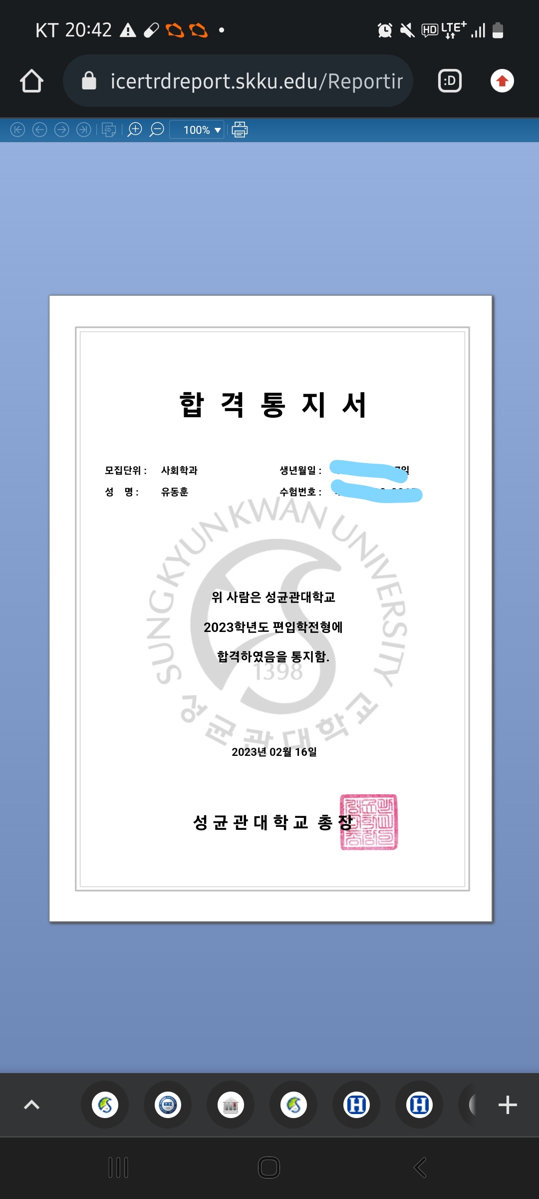 최종등록대학/학과 |