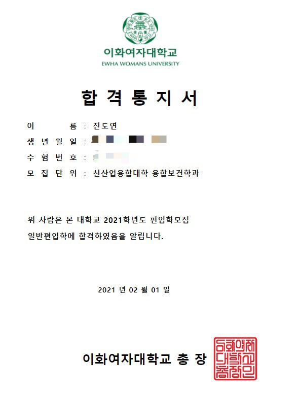 이화여대는 저에게 1순위 대학이었습니다. 이대를 합격하는 순간 그동안의 노력이 빛을 발한 것 같아 기분이 너무