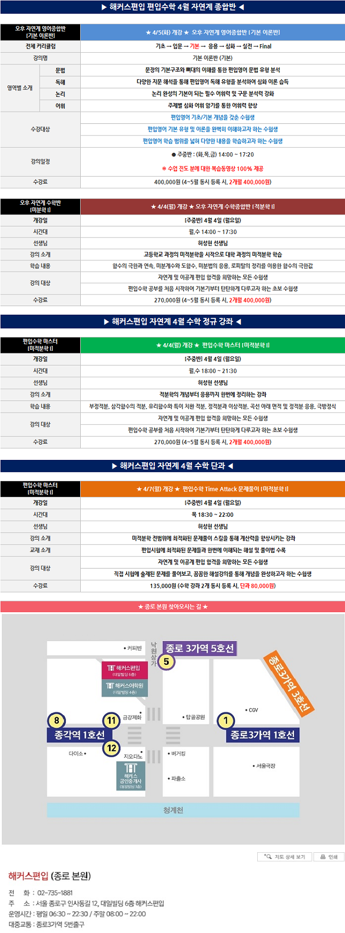 ¡Ú ÇØÄ¿½ºÆíÀÔ Á¾·Î º»¿ø <4¿ù ¼öÇÐÁ¾ÇÕ¹Ý ÓÞ°³°>¡Ú |
