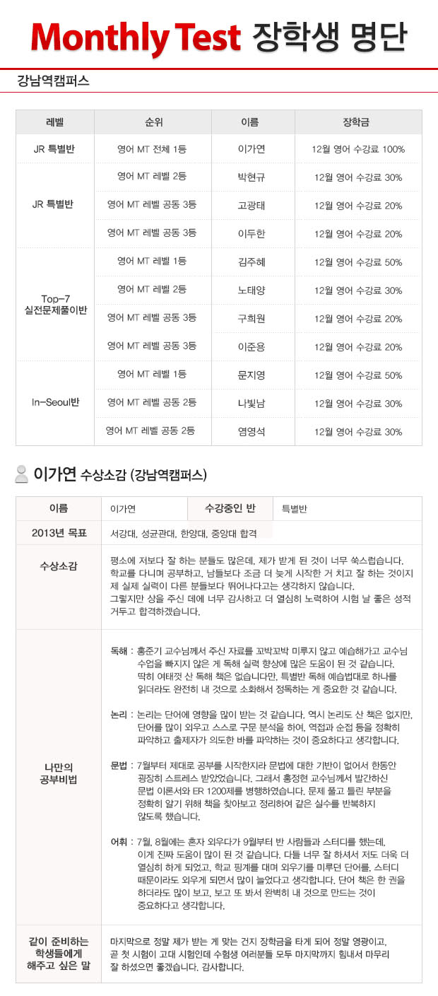 2013³â 1¿ù Á¾°¢Ä·ÆÛ½º MT(¿ù¸»°í»ç) ÀåÇлý ¸í´Ü
