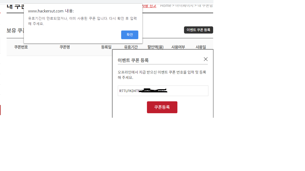 쿠폰 등록 페이지를 다시 확인 부탁드립니다.