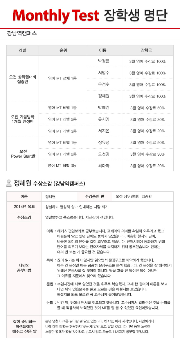 글제목 2013년 2월 강남역캠퍼스 MT(월말고사) 장학생 명단