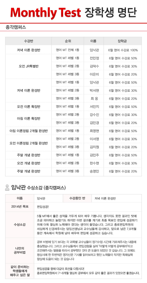 글제목 2013년 5월 종각캠퍼스 MT(월말고사) 장학생 명단