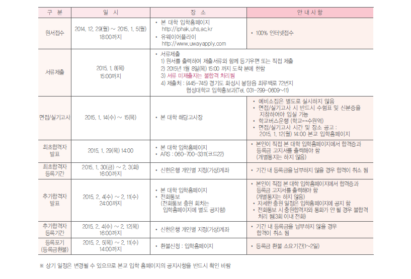 2015학년도 협성대학교 편입학 모집요강 안내드립니다.