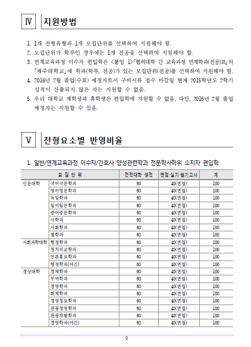 2016학년도 제주대학교 편입학 모집요강 안내드립니다.