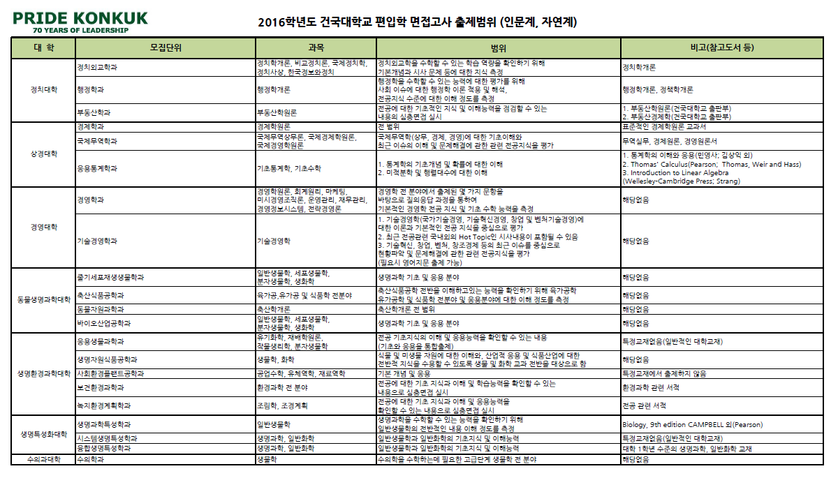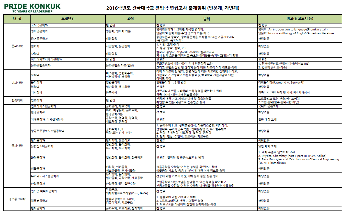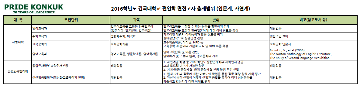 2016학년도 건국대학교 편입학 면접고사 출제 범위 안내드립니다.