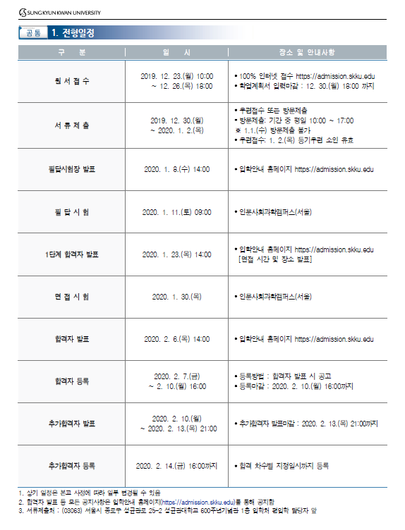 2424 모집요강 [2020학년도] 성균관대학교 최종 모집 요강 안내 첨부파일    2019-12-12