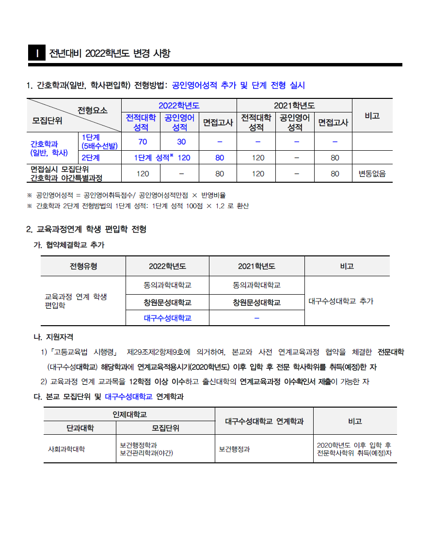 2022학년도 인제대학교 편입학 기본계획 안내입니다.