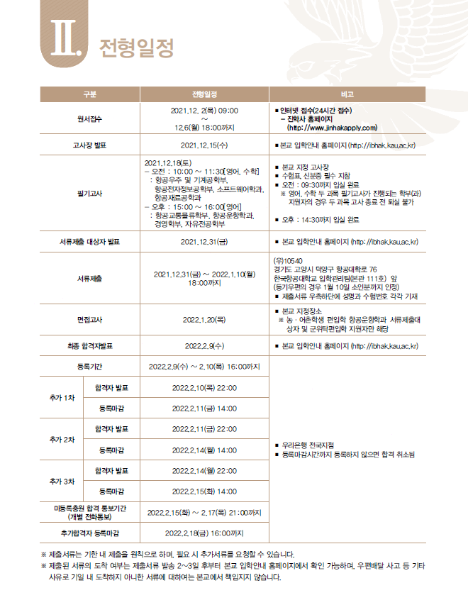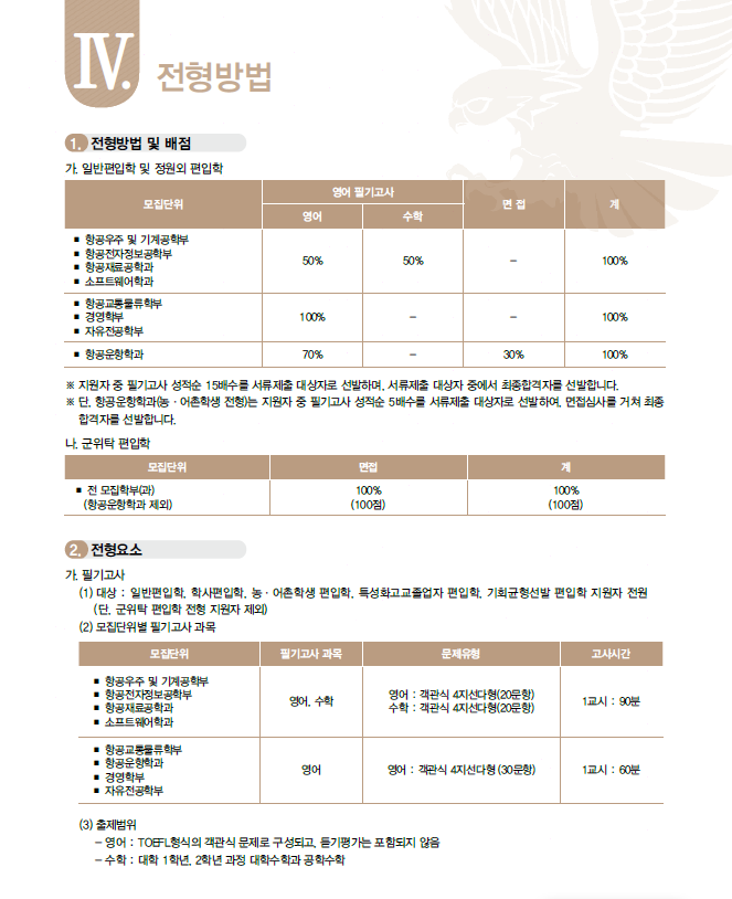 2022학년도 한국항공대학교 편입학 모집요강입니다.